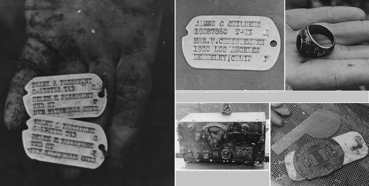 BTG S/Sgt. Stanley Pilch Jr. was not found at first. After the ditching in December 1943, co-pilot Taylor regained consciousness, climbed out through the big crack in the side of the cockpit and swam away from the sinking aircraft. When it appeared to stay afloat, Taylor swam back and climbed the fuselage to open a dinghy storage. He noticed Pilch in the cold water, outside and next to the side of the a/c. They exchanged a hand signal. The dinghy inflated itself automatically, but the wind blew it in the water. Taylor swam after it and grabbed it, but because of the cold and weight of his flying suit, Flak jacket and Mae West he could not climb in. Taylor hold on to it and passed out (water was near freezing point). S/Sgt. Stanley Pilch was never seen since then and became MIA. It was expected he lay on the bottom of the lake somewhere or had washed ashore in 1944 and probably was buried as not identified airman. However, on the last day of the recovery operation, an Army tank pulled parts of the wreck from place and the remains of Sgt. Pilch were discovered. The last and 5th man was found.