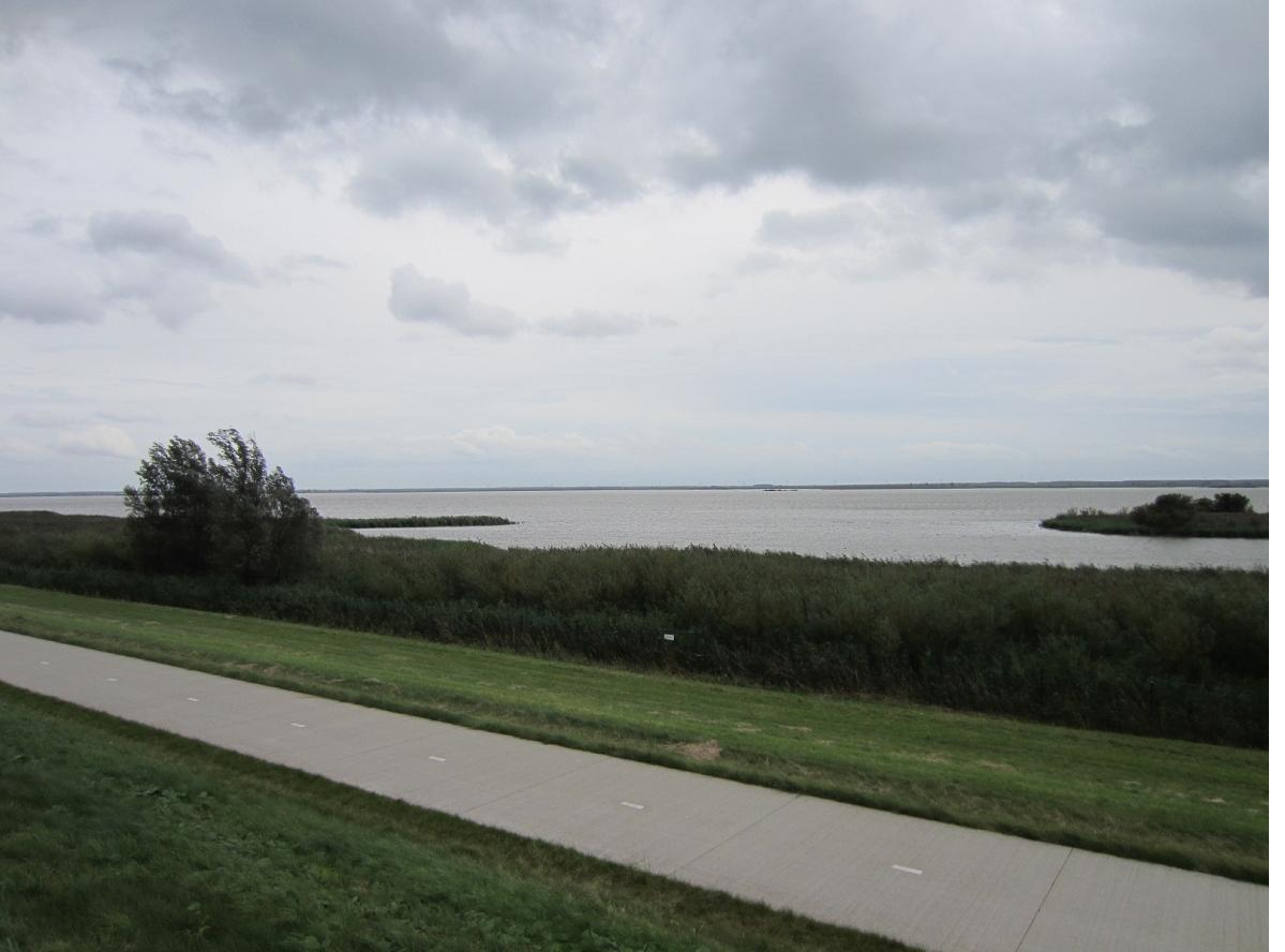 Below. On the dyke, view to the other side, towards Uitdam (centre-left). In 1943 this dyke-road and visible green islands did not exist. It was water all around.