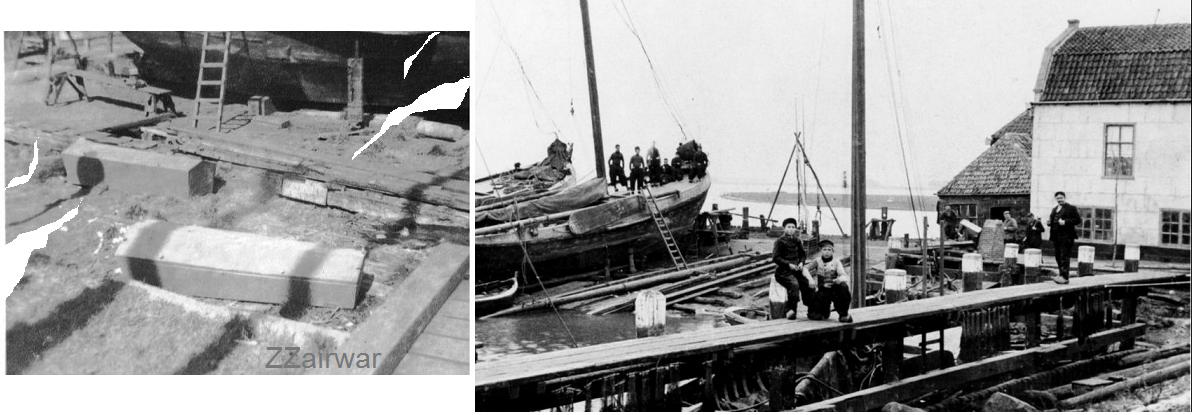 The Volendam slipway. Image shows coffins with drowned and brought ashore American airmen, 1944. This photo came from the attic of the maker. It was one of the intriguing items that came to light in the interviews on the air war with elder people on the dyke.