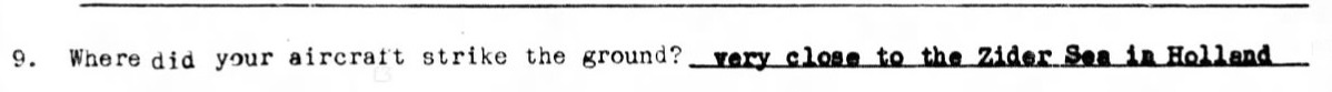 Some of the crew wrongly believed they got down near the Dutch town Leeuwarden, but this was only because the name of this town was the nearest reference point on their map (above). In reality, Leeuwarden was 40 miles away. Pilot Sharpless knew very well he landed near the edge of Lake IJsselmeer (Old Zuyder Sea), in a polder, an area that was water two years before and still a mud-flat when he made the belly landing. Sharpless: