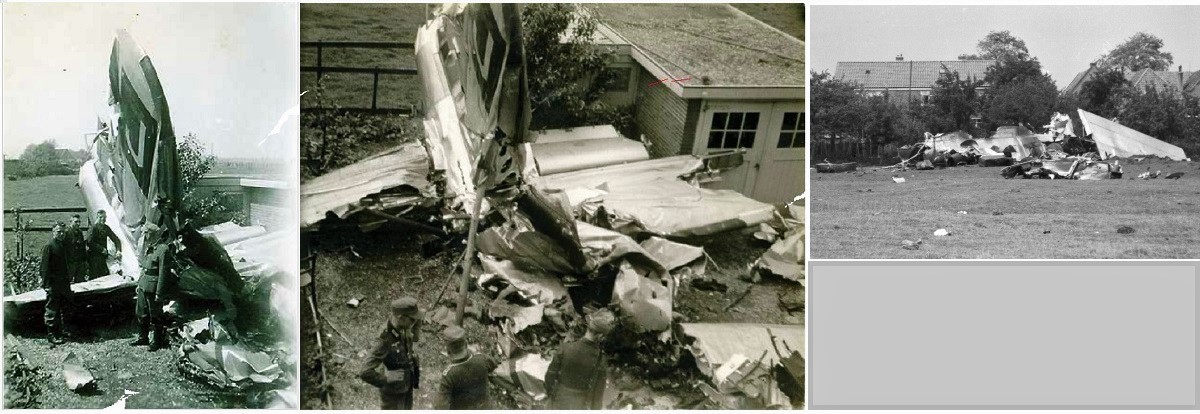 Tail section of Gregor's '107070' at Westersingel street no. 6. First civilians and minutes later German soldiers arrived on the scene.