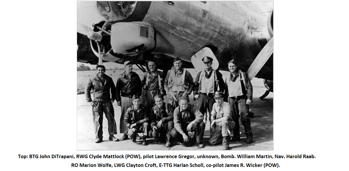 | 1 | Pilot | 1Lt. Lawrence J. Gregor 8 men this crew KIA | 9 | RWG | S/Sgt. Clyde O. Matlock POW | |||||