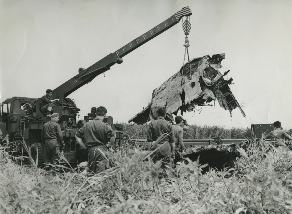 Images of the May 1971 tail recovery. Photos: S.L. Veenstra, book 'In the schaduw van de glorie', 1992. The book mentiones section J-104, but it was G-105/106.