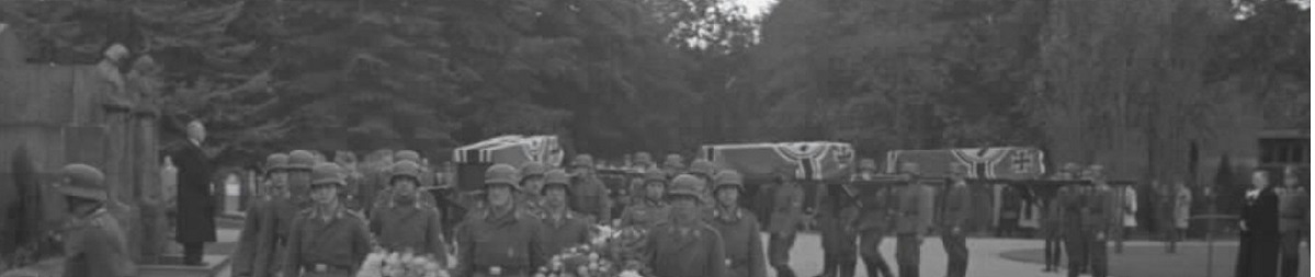 Below a German funeral for a three men crew of a Heinkel He-115 C, summer 1940. Crashed in the IJ-meer (southwest IJsselmeer, in front of todays Amsterdam-Zeeburg). They leave the morgue on their way to the German burial plot 70. The coffins are covered with the German war flag, the so called 'Reichskriegsflagge'. On the left a civil official is standing in front of the tomb of Dutch General van Heutsz (1924).