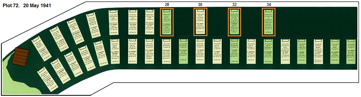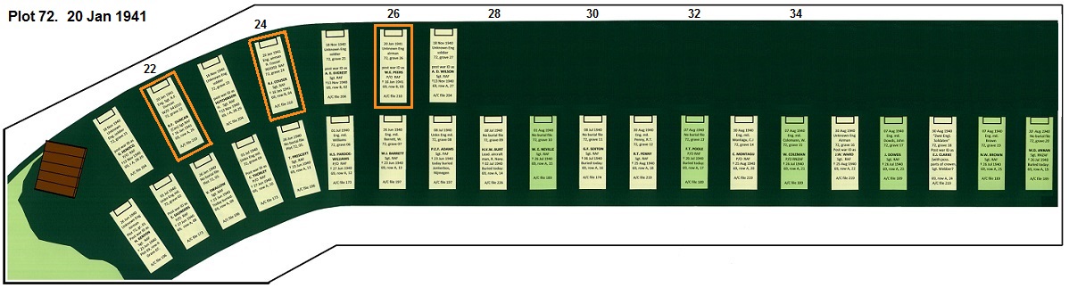 Plot 72 in year 2012. Shortly after WW2, the graves were transferred to Plot 69 and 85.