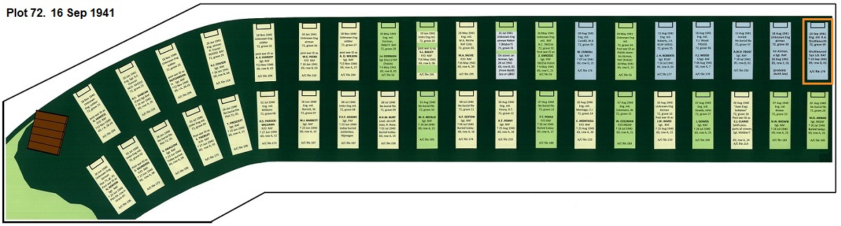 Last grave on Plot 72 (grave 39): Squadron Leader Richard A. Shuttleworth (age 21).