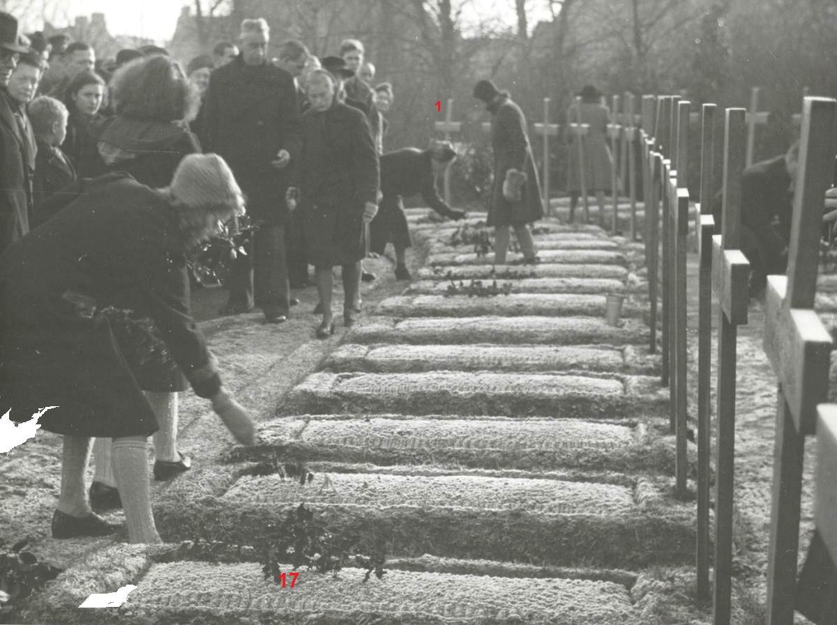 Plot 72 late summer 1946. In grave 17 Sgt. Dowds. In grave 19 crew member Sgt. Norman W. Brown, fished up by Jan Kes, VD46, begin Aug 1940.
