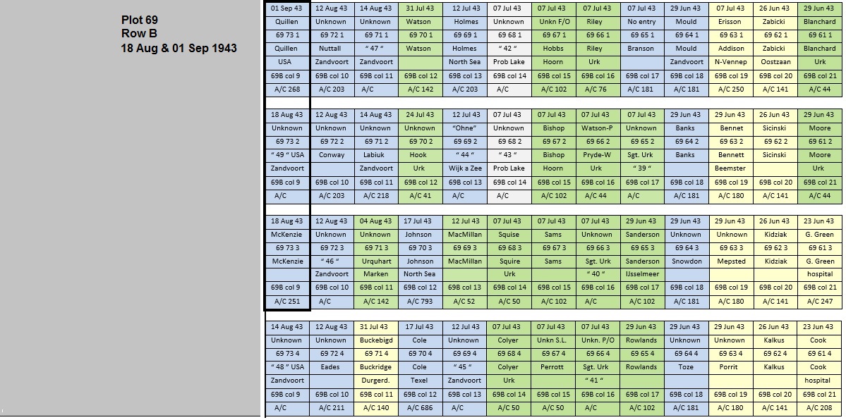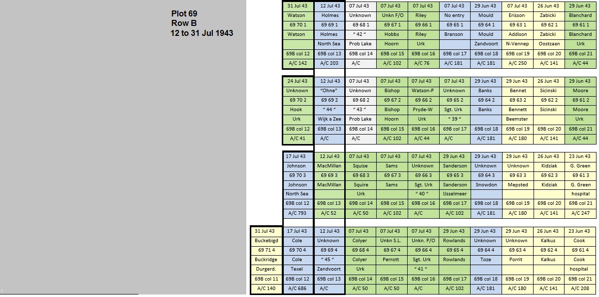 Above image: Top view on Plot 69 and interment July-December 1943.