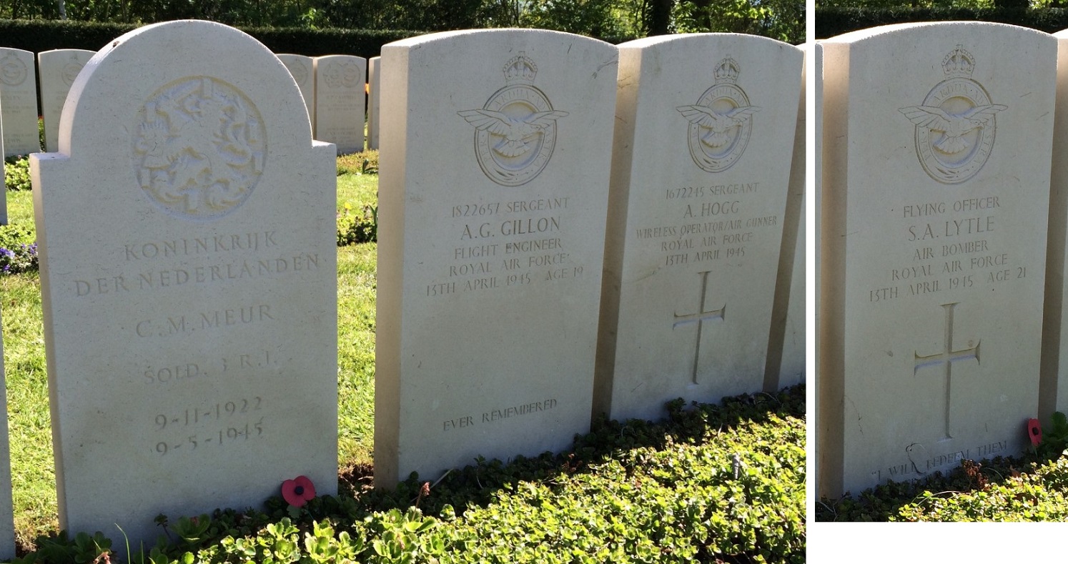 Headstones on this positions are now of radio operator Sgt. Arthur Hogg and bombardier Flying Officer Samuel A. Lytle.