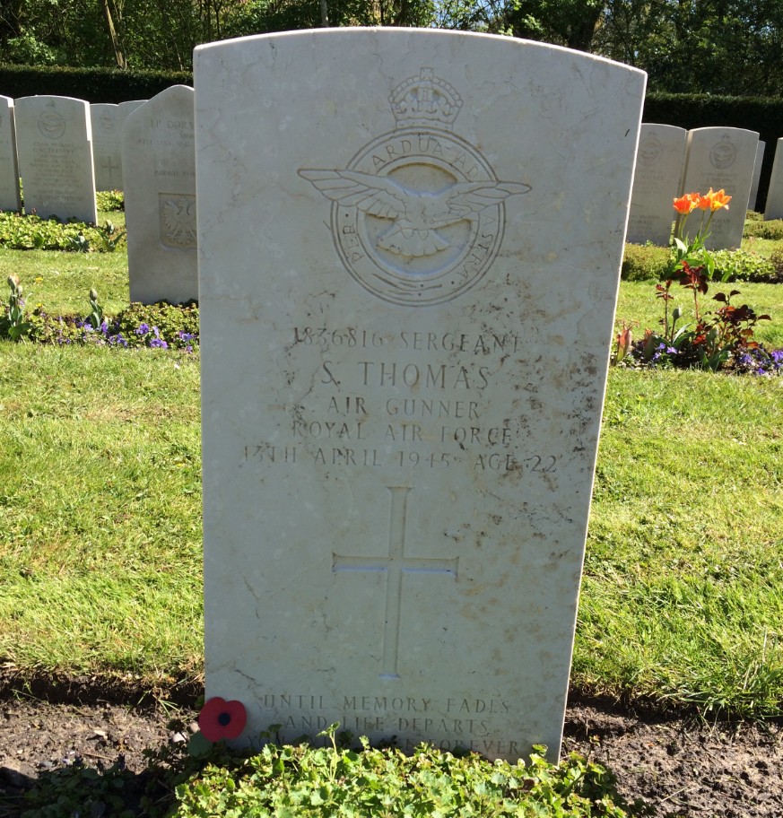 Grave 85. 24 May 1945. In coffin 85-4 was an unknown English Sgt. Headstone today: air gunner Sgt. Stanley Thomas.