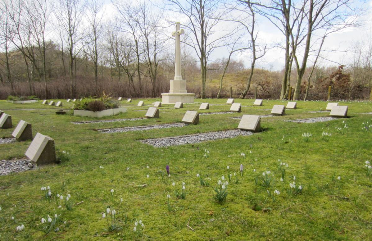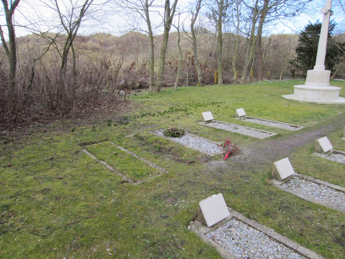First was buried AC1 (Aircraftman 1st class) Alan Wilson, shot down 29 October 1939 (Hampden L4127) washed ashore (photos exist) and buried 29 November 1939 by Dutch and British officials. This island was occupied by the Germans 16 May 1940. They buried the next two washed ashore British airmen (1 and 15 June 1940) left and right of Alan Wilson. Left Sgt. William Martin, right his pilot Micheal E. Ryan. They were crew of Blenheim L9259, North Sea north of this island May 24, 1940.