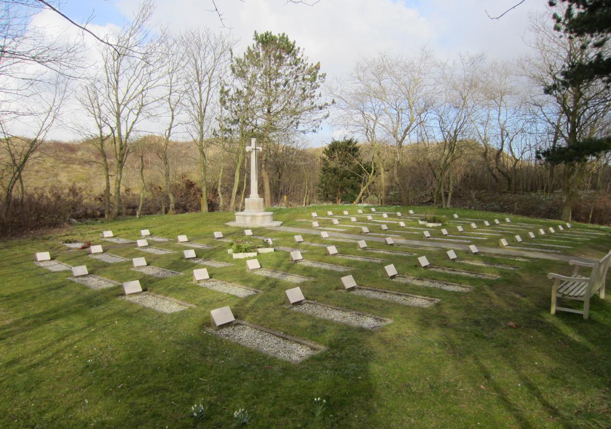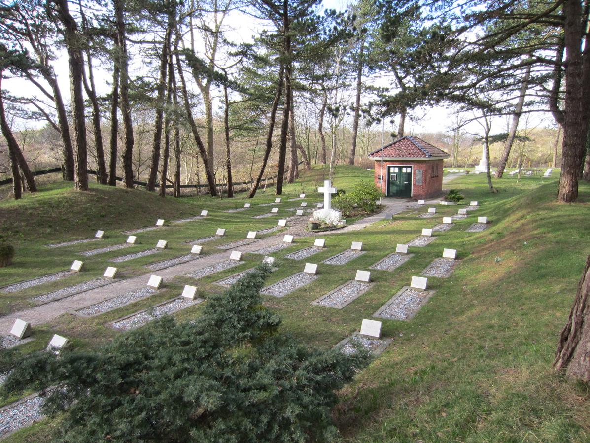 Dutch newspapers report that on Sunday 28 July 1940, four French soldiers, one of them an officer (Marquézy) washed ashore here and were buried on the 30th July 1940. A day later again 17 soldiers washed ashore, found by three young man that were swimming. One bumbed into a floating corps. The men laid the body on a plank that the sea had delivered on the beach (driftwood). When they looked closer, they noticed more bodies in the water and recovered them all. Spread out on the beach and based on the uniforms, it could be made out that 14 of them were French, 3 were British.