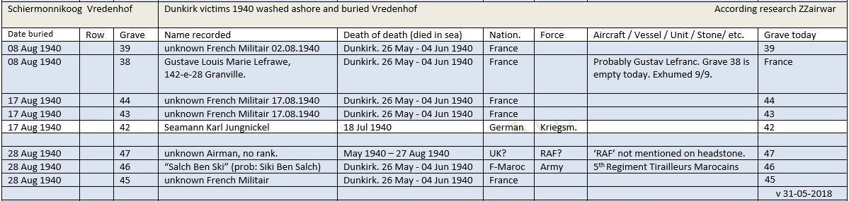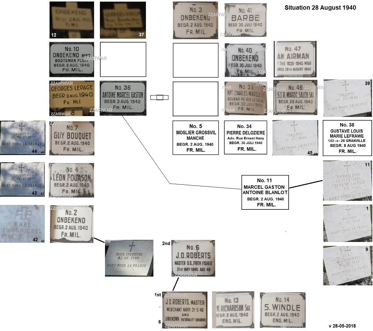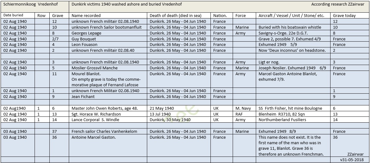 - 7 French soldiers and sailors (1940, Dunkirk), identified (including Fernand Lafosse).