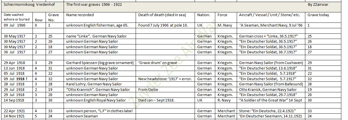 - 17 men 1906-1938 (1 English fisherman 1906, 1 English Royal Navy sailor 1918, 3 German sailors 1921-1938, 12 German Navy Sailors 1917-1918).