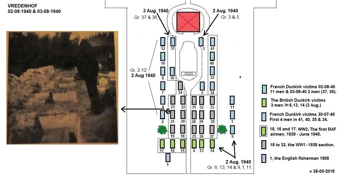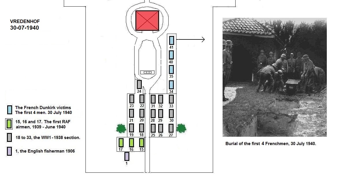 Below: Vredenhof cemetery situation after Dunkirk and the sinking of the Emile Deschamps. 30 July 1940 - early 1941.