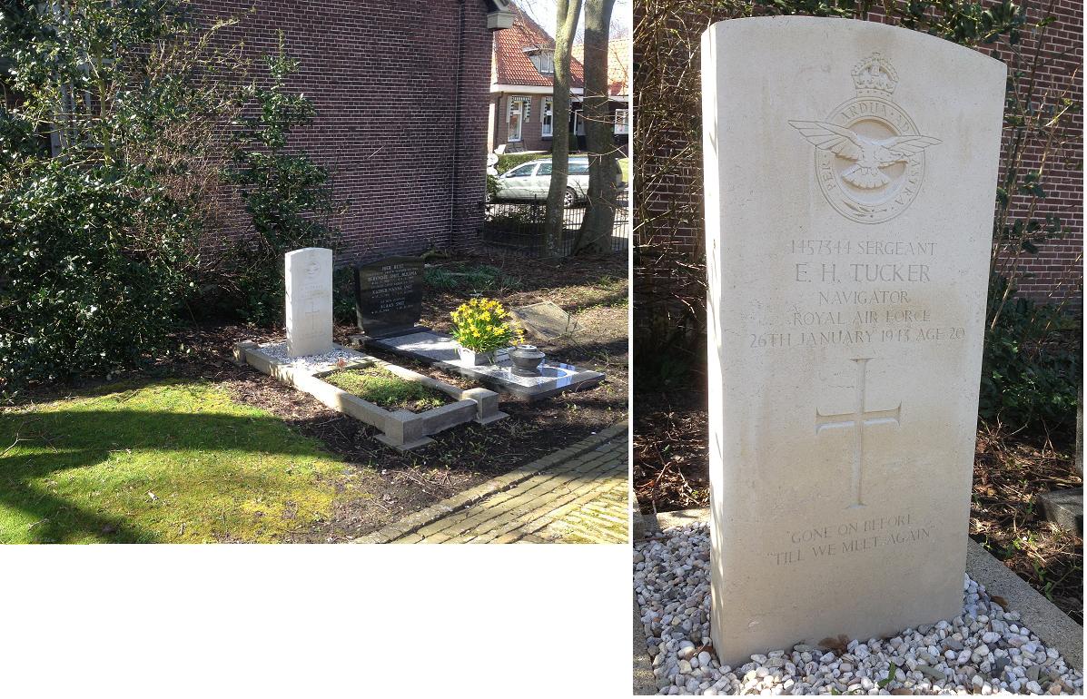 Sgt. Eric Tucker washed ashore and buried here. This was unusual because Den Helder Huisduinen was the designated cemetery for this coastline. Tucker was not buried on the yard behind the church, but on the right hand side of the entrance (photo below). It looks a temporary grave-position, as if they expected that he would be collected for burial in Den Helder within a few days. That never happened. In 1947 the 180 airmen in Den Helder Huisduinen were exhumed and reburied in Allied centralisation War Cemetery Bergen-op-Zoom in the south of the NL. Sgt. Eric Tucker stayed here. His grave is a lone reminder of the many Allied airmen that washed ashore here.